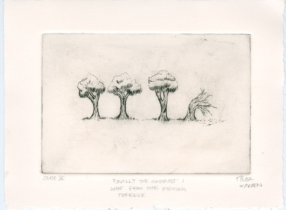 Intaglio Prints completed at Whatcom Community college. Inaglio is a print making process which involves using a copper plate, etching into it, and then applying an ink to the plate. Printing paper and the plate are then placed into a press.
